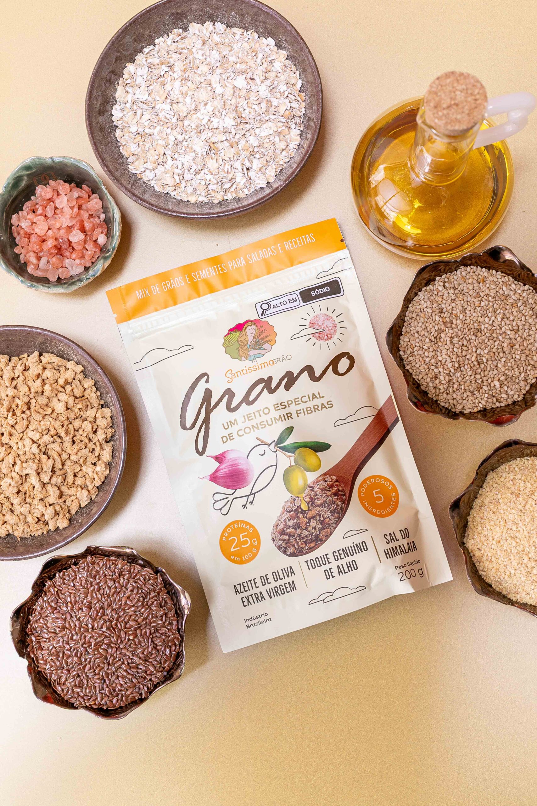 Grano é a combinação perfeita de 5 incríveis e poderosos ingredientes em uma fórmula saborosa que está dando o que falar. Cada ingrediente tem seus “super-sabores” conhecidos há centenas de anos por possuírem diversificadas propriedades. Tenho sabor único, sou crocante, vegano e complementar, ideal para todas as refeições. Grano é um produto natural 100% produzido por mulheres da família, no interior de Minas Gerais.